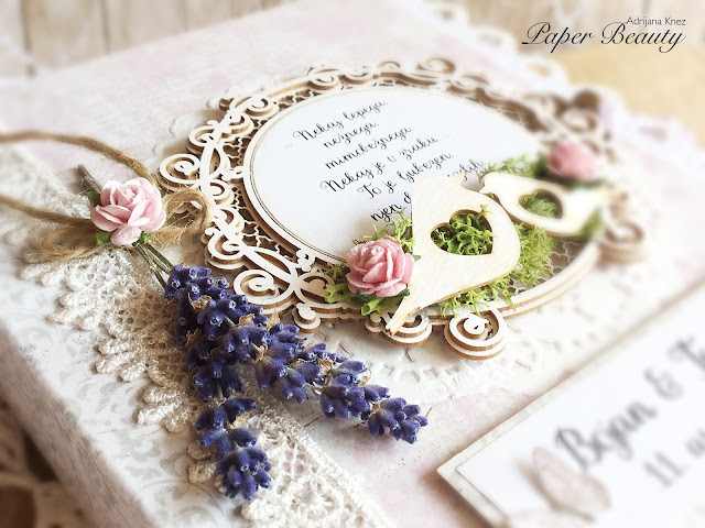 Hi my creative friends. Today I’m sharing with you a very delicate book card “Lavender” for wedding. I used beautiful Maja Design papers and my favorite Scrapiniec chipboard "Big Round Frame". I also added some Wild Orchid Crafts roses and a lace ribbon. Have a nice day and see you soon!